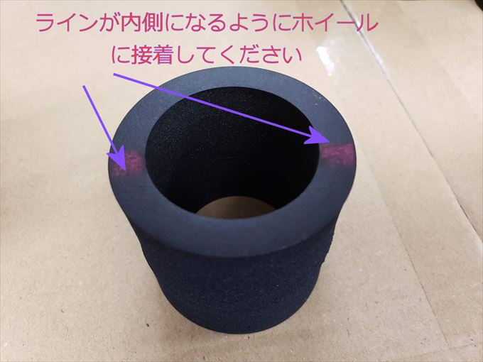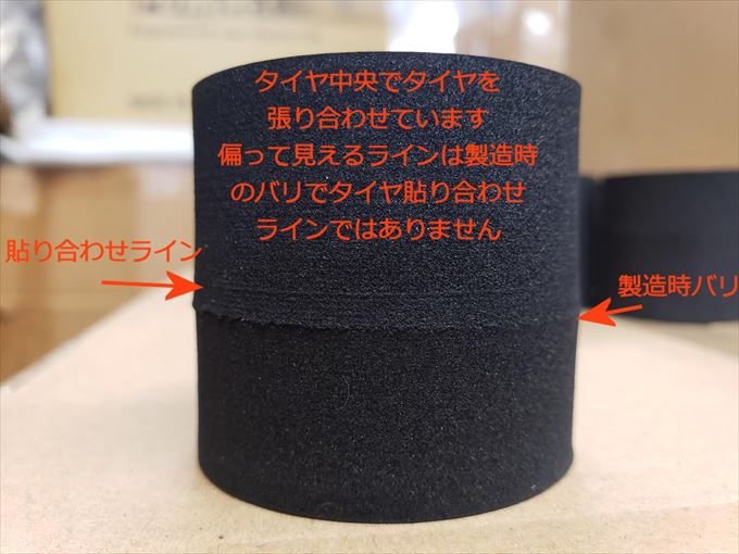 タイヤ側面にコンパウンドを示すラインが入っています。これが内側になるようお使いください